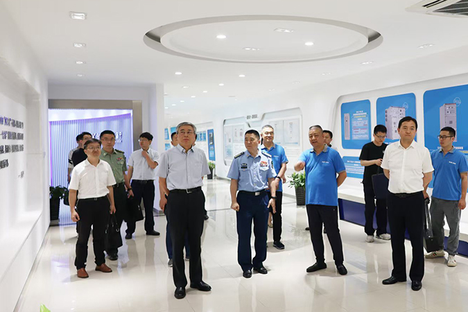 合肥市委常委,合肥警备区政治委员、党委书记方涛(前中)、合肥市人大常委会党组副书记王文松(前左一)等领导一行领导莅临我司走访调研